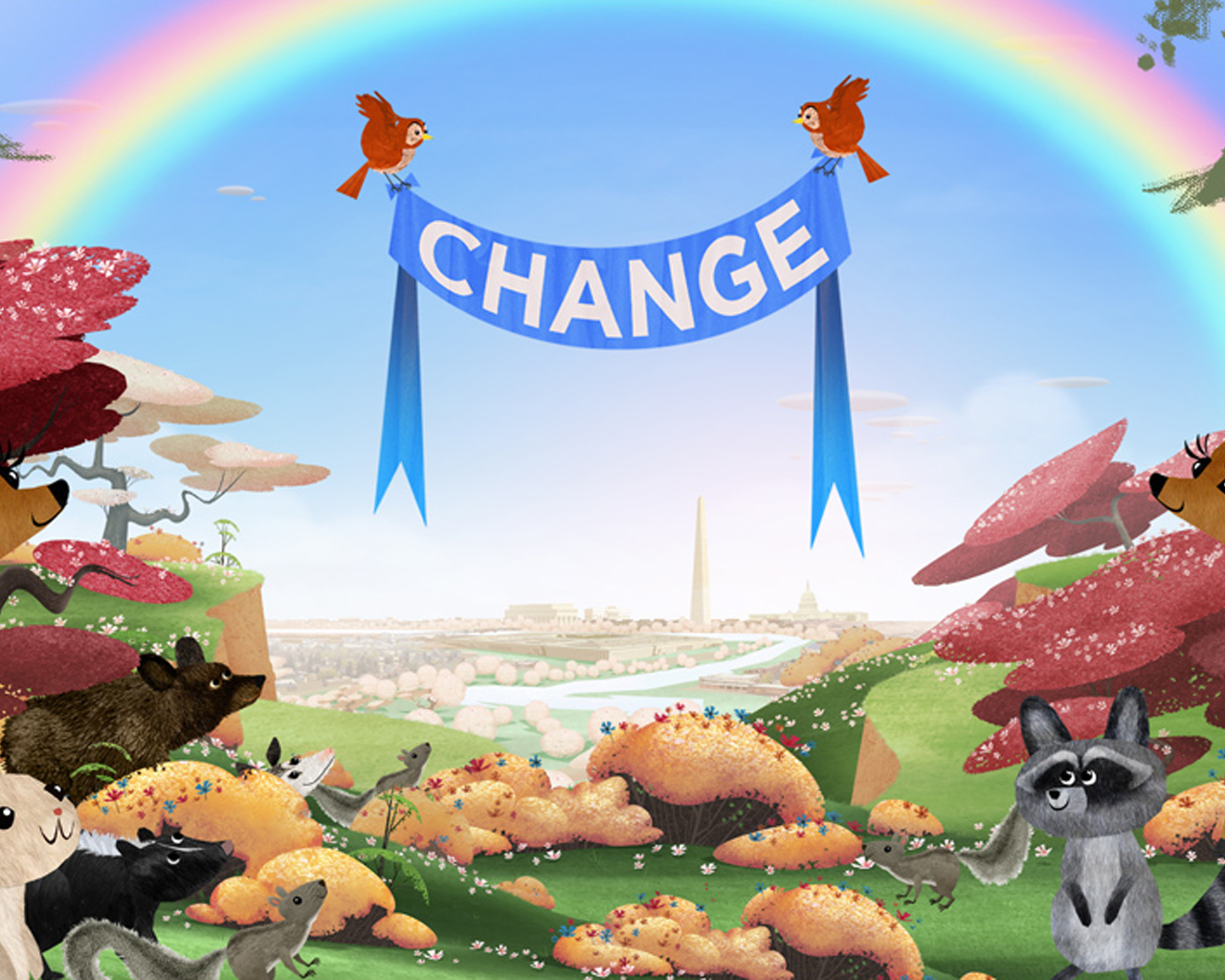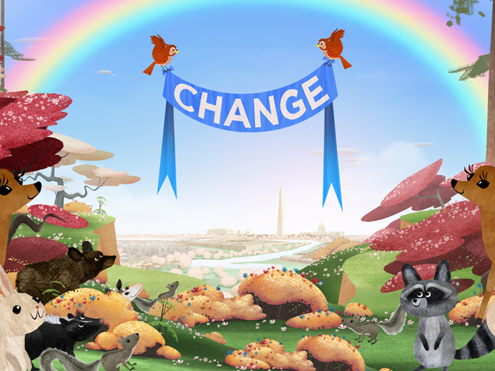 Speaking of change,we’ve cooked up some spiffy wallpapers from our 2008 election hit Time for some Campaignin’. Now you can commemorate Obama’s ascension to office with a gorgeous view of Washington D.C., accompanied by more cute creatures than you can shake a stick at!