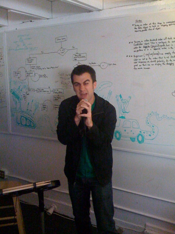 When we posted about Rock Band earlier this week, people started leaving captions on this picture as if it were a caption contest. So now that they’ve started, why not take it all the way? This is Dan, JibJab’s community man and blogger extraordinaire, singing his heart out to either Linkin Park or Bon Jovi. The best caption here or on our Facebook page gets a free JibJab t-shirt in one week’s time! Don’t forget to check out last week’s winner too!