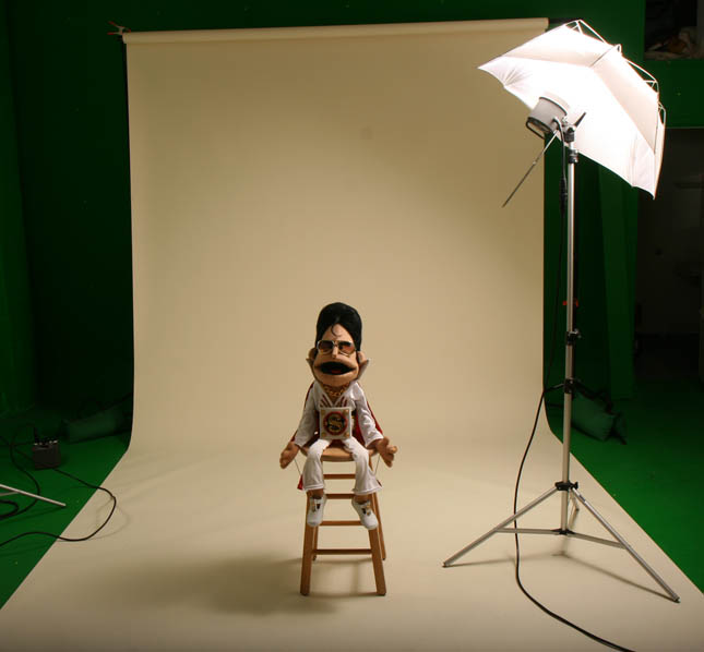 In the studio last week, we had a very special impersonator hanging around.  The puppet was masterfully designed and constructed by Mike, one of our multi-talented animators.  Look for this hound dog on the site very soon!