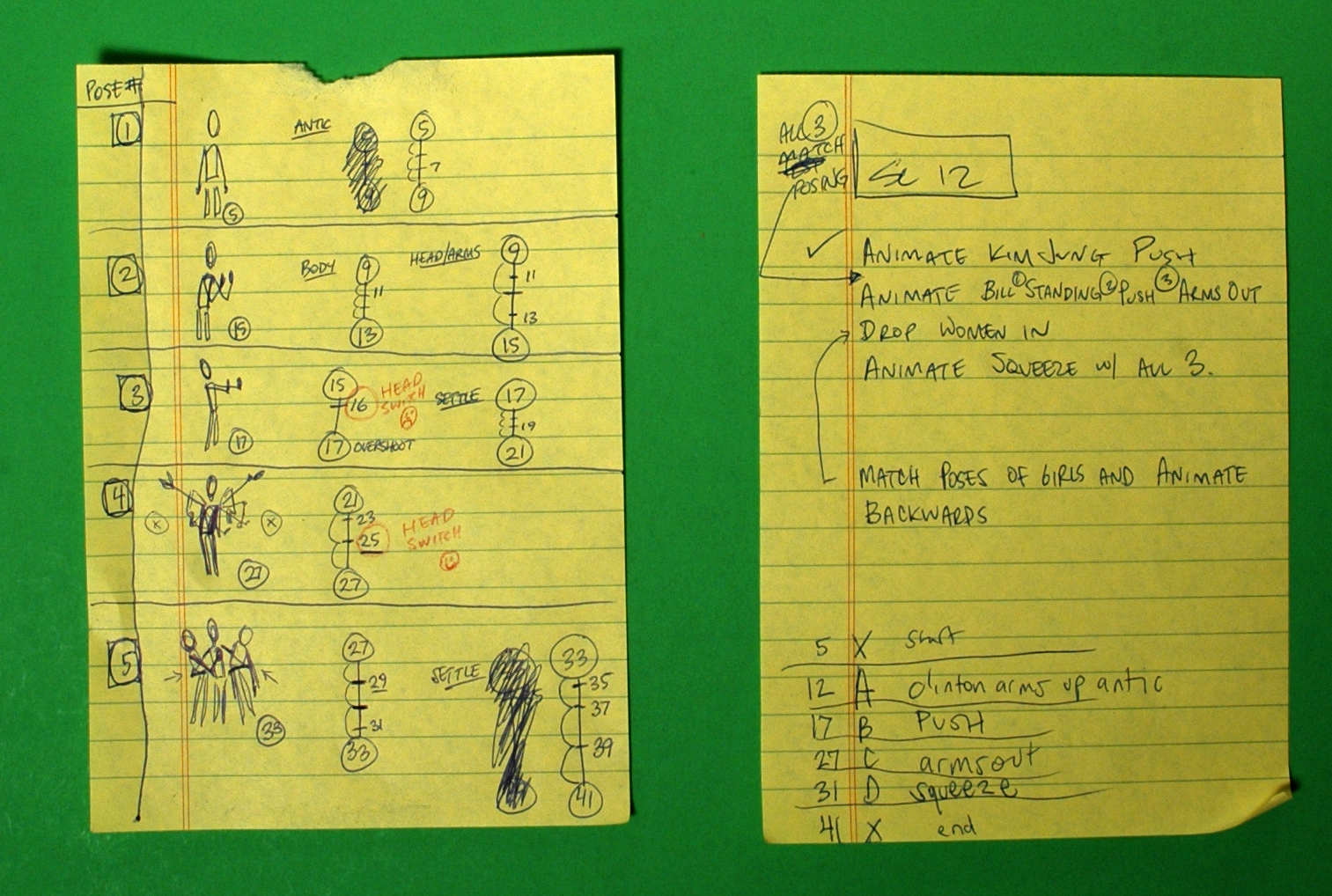 The more characters, the more pieces. The more pieces, the more complicated it is to produce! For this shot Kevin had to breakout the old school timing charts to figure out exactly how all those tiny assets should be moving…