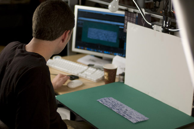 This is another one of the first shots that we began working on. It was the ultimate combination of real sets, live-action puppetry and stop motion. Devin built the plane out of clay and filmed it on fishing wire. Evan built the NYC skyline with paper cut-outs. Ian designed and animated the waves on the down-shooter and Devin animated the splash with tissue paper. At the end, Ian pulled all the pieces together and threw in one his fancy, back lit tissue paper backgrounds.