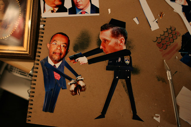 We had a lot of ideas about this shot when we were getting started. Most of them revolved around the two guys chuggin’ beers with Obama on the White House lawn but 1) there is a lot of Obama in this video already and 2) we thought it was kinda funny to see Sgt. Crowley draw his weapon. We do, however, wish we could have worked the beer in. Oh Well!