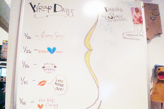 We have a big ol’ whiteboard up in our studio that lets everyone know what date we need to aim for when wrapping animation on projects. Usually, taking a photo of this board would be giving away many months worth of stuff, but since we’re launching all of our new Valentine’s Day videos this Tuesday, February 2nd, we’re going to show you our upcoming slate and let your imaginations run wild for a few days!