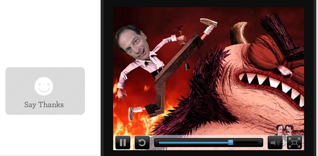We’ve recently added a new tool into our eCards that demands a little write up: now when you receive any JibJab eCard, you will see a button that prompts you to thank the person who sent a JibJab your way. We’ve made thanking easy, by creating a special category of all-free-eCards so members and non-members alike can throw a thank-you message back at their friends. Next time you receive a JibJab, look for the smiley button on the left and give a JibJab back!