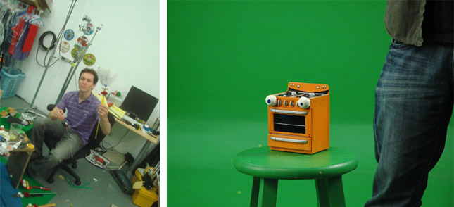 Creating upwards of 8 kitchen based puppets that could sing and speak in their own unique ways was a tough chore. Have you ever tried to attach eyes to a feather duster? Devin and Mike stepped up to the task to bring these creatures to life for our Mother’s Day short. Take a closer looksy at how we made each creation work!