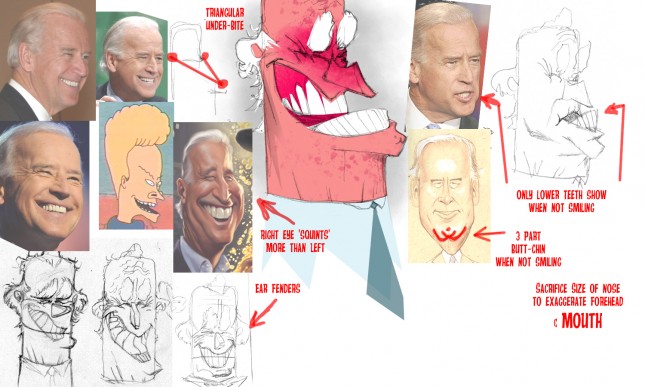 For Biden, Justin’s drawings captured the goofiness we wanted to inject into the character but Dave injected a bit of Beavis which we thought was hysterical. When Evan made the puppet he tried to fuse the two ideas together with felt…