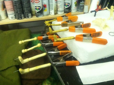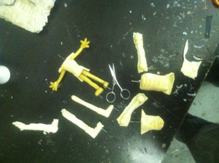 When building the foam-latex puppets, each piece was built with clay, given it’s own flexible wire, and created with mold-making processes that needed to be cut out from the left-over material known as ‘flashing.’