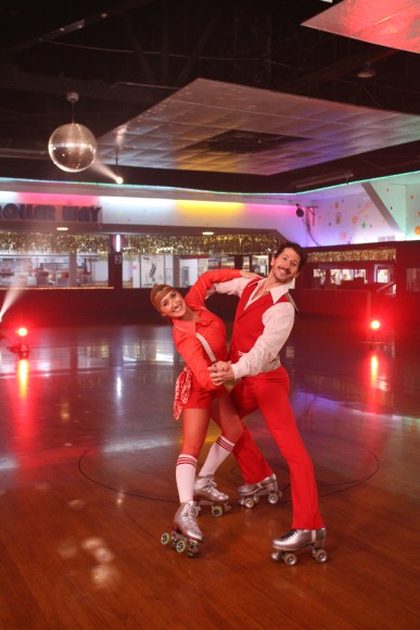 After racking our brains for romantic locations for our new Starring You Valentine’s Day eCard, we decided what better place to bring a date than a roller skating rink. We scouted around Los Angeles and found Moonlight Rollerway, a classic rink with some disco flare. Not only did we have the chance to get away from the studio and shoot on location, but we also had the pleasure of working with some very talented skaters, Trey & Nikki!