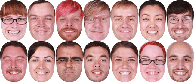 Do you ever wonder who’s head you are covering up when you make one of our many fun Starring You eCards? As you know we typically use an employee as an actor or model for a new video, but did you know our faces are also the grey default heads? We recently had a photo shoot of some of us here to make some new ghost heads for the site. It was school picture day all over again and with the help of our trusty photographer, Anthony, we got some great faces!